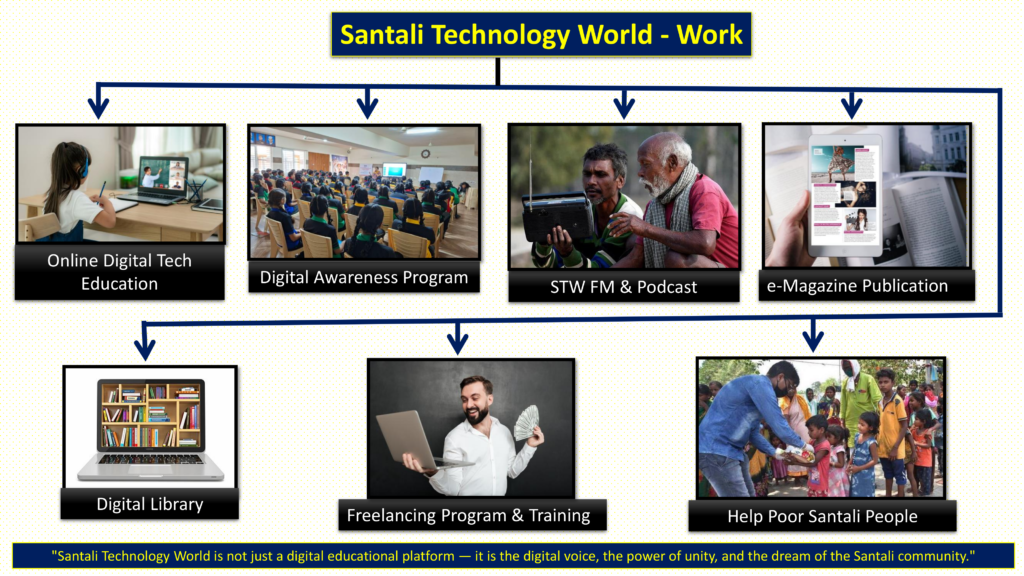 To keep the Santal society relevant in the modern era by preserving our existence through technology. We aim to provide technical education in our mother tongue and uplift the Santal community through digital development.